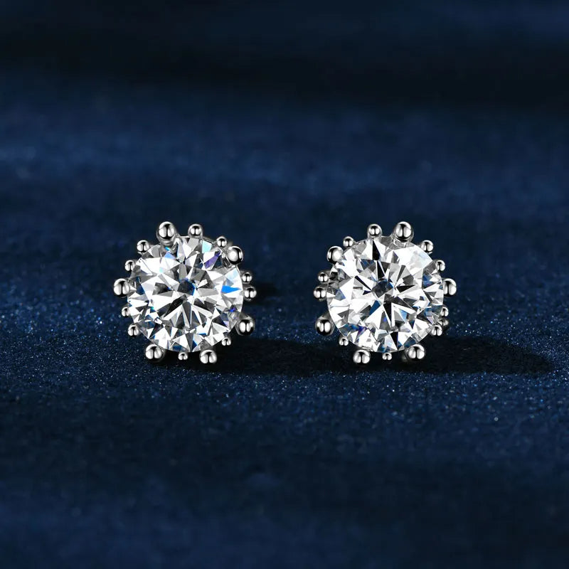Sunburst Crown Moissanite Stud Earrings