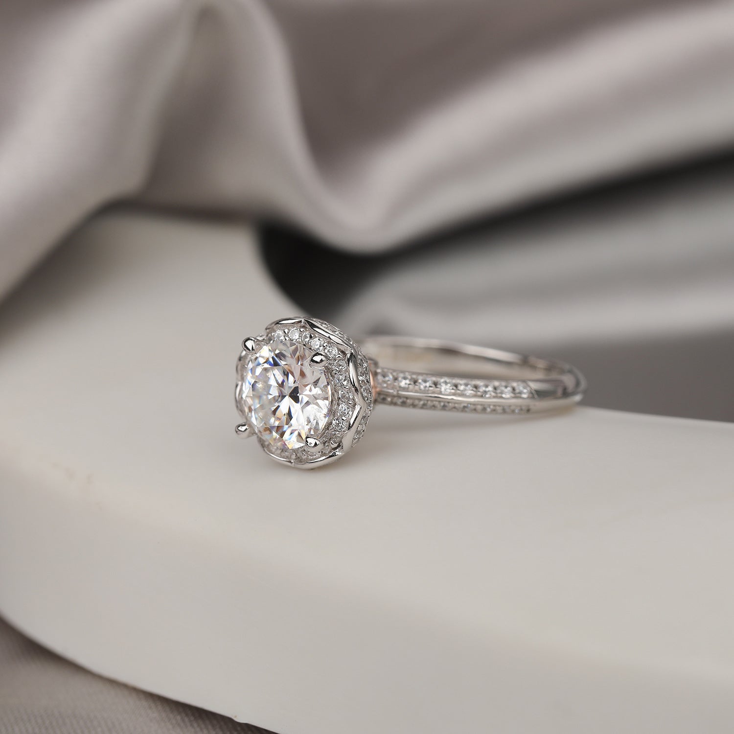 Lotus Crown Floral Halo Moissanite Engagement Ring