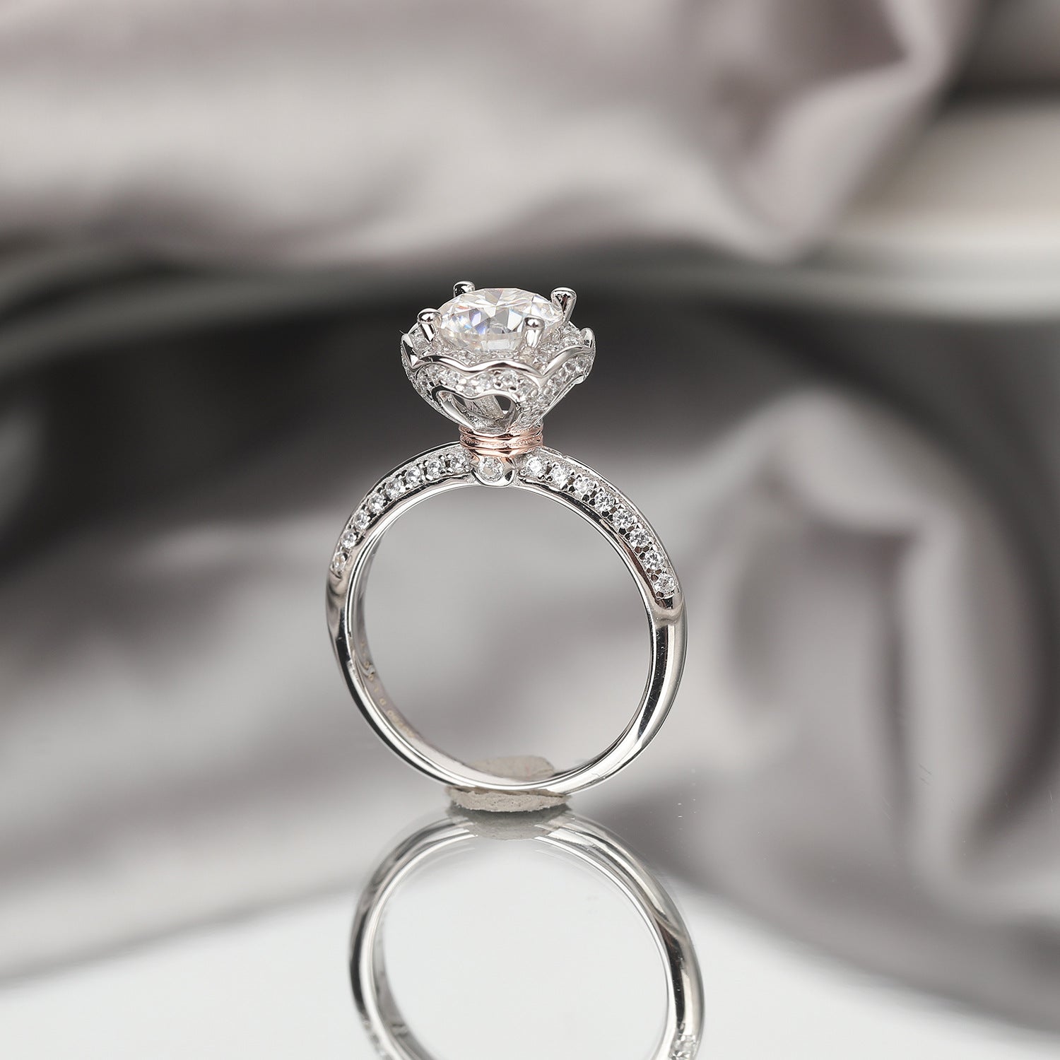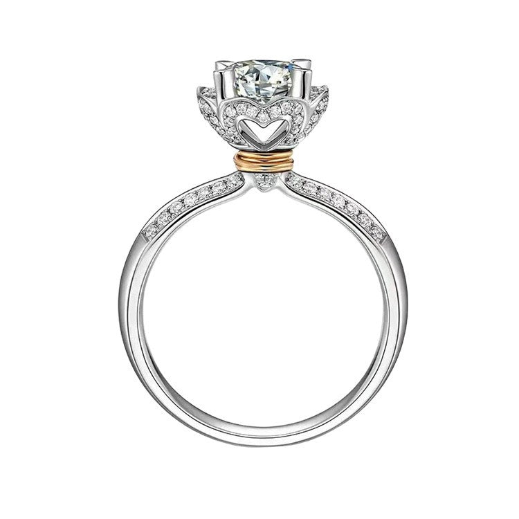 A romantic take on a classic solitaire — lab-grown moissanite set in S925 sterling silver, finished with a heart-detail gallery and subtle pavé accents. GRA certified, with 30-day hassle-free returns.