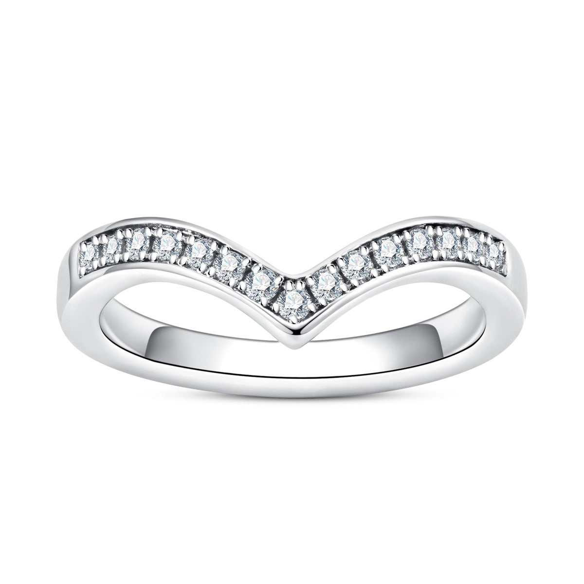 A refined V-shaped band set with brilliant lab-grown moissanite. Crafted in solid S925 sterling silver with rhodium plating, this ring offers a clean silhouette and subtle sparkle—perfect worn alone or stacked with a solitaire.