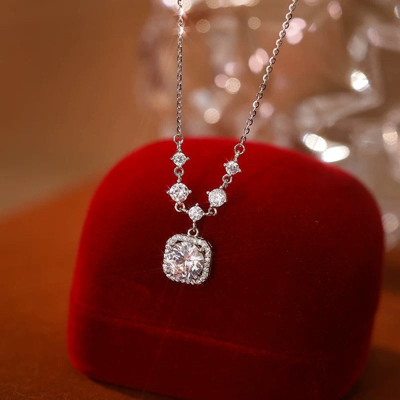 Square Solitaire Moissanite Necklace