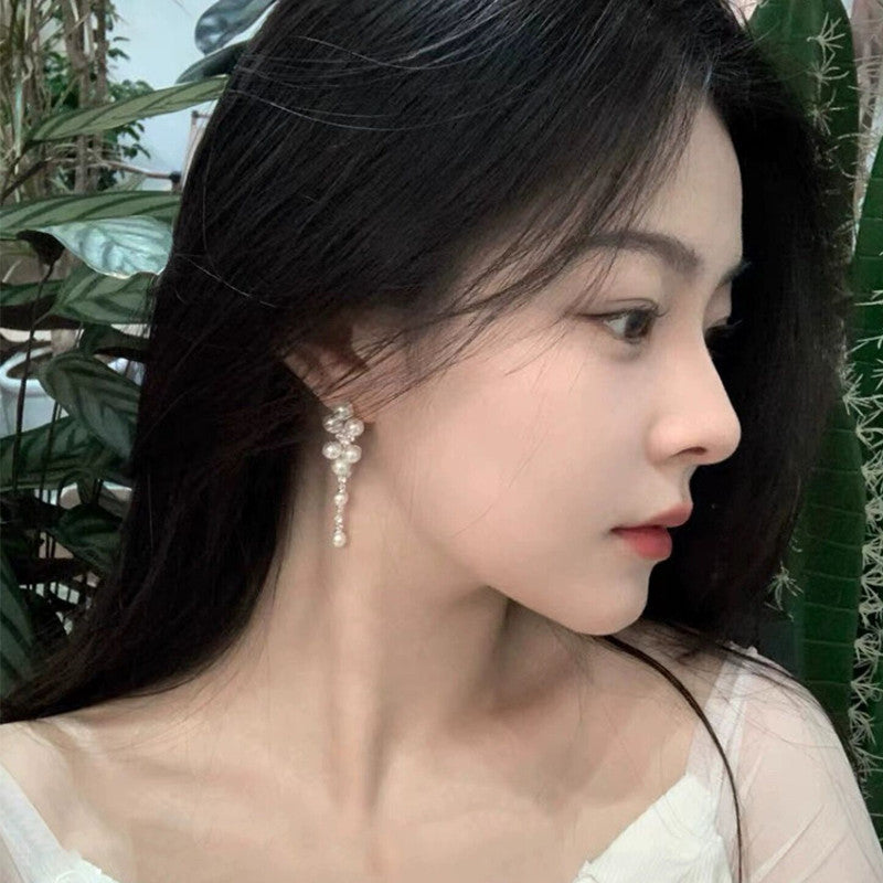 These French pearl vintage earrings perfectly combine classic French elegance with modern sparkling elements, bringing you a unique and charming temperament. The design of the earrings is based on a vintage theme, with delicate shapes and intricate craftsmanship.