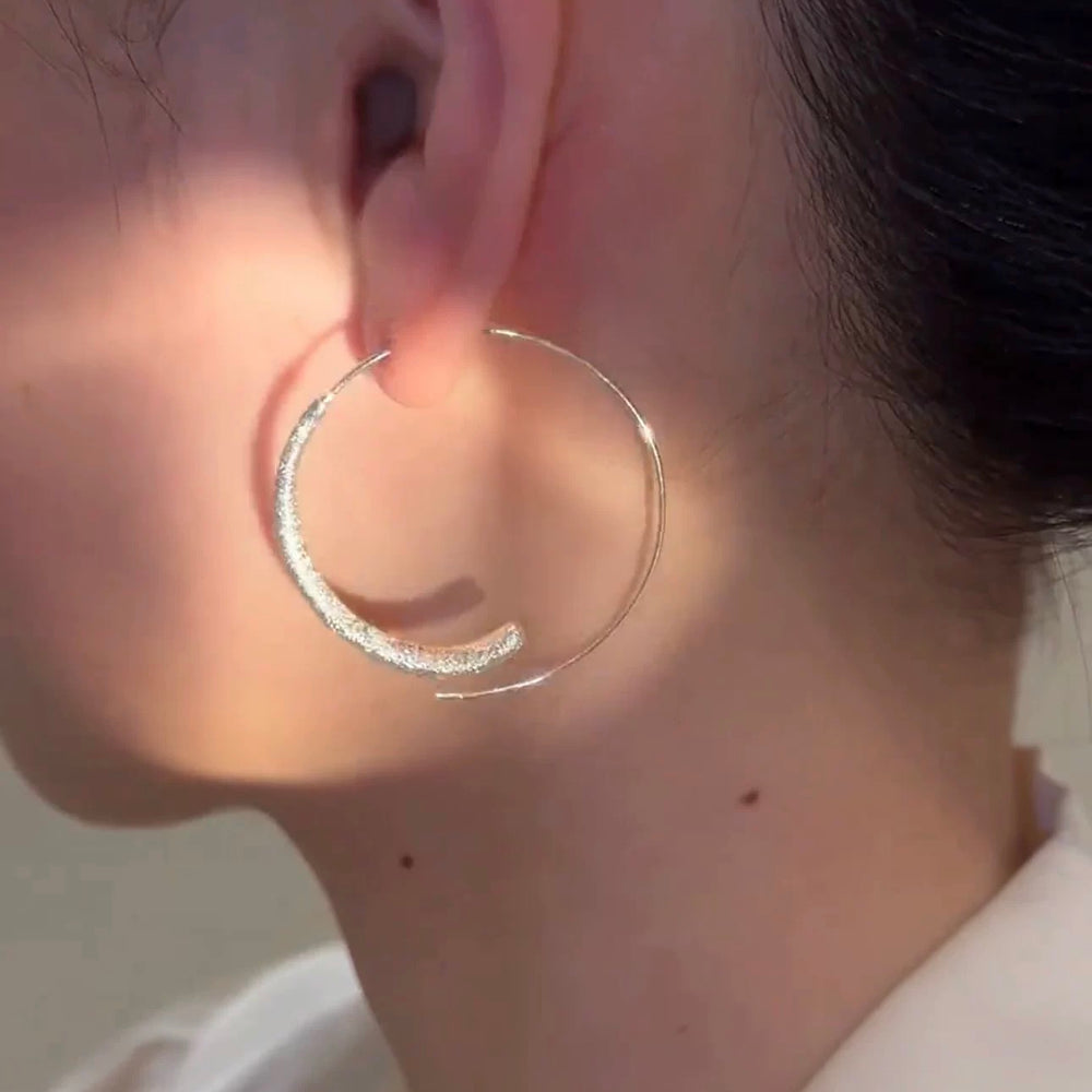 Like a whole starry sky, quietly hidden in the ear. This full star circle earrings, with a minimalist interpretation of the gentle light, the front end of the special use of frosted technology, delicate texture such as the night sky shimmering, hidden refraction of high-level and restrained sense of sparkle.