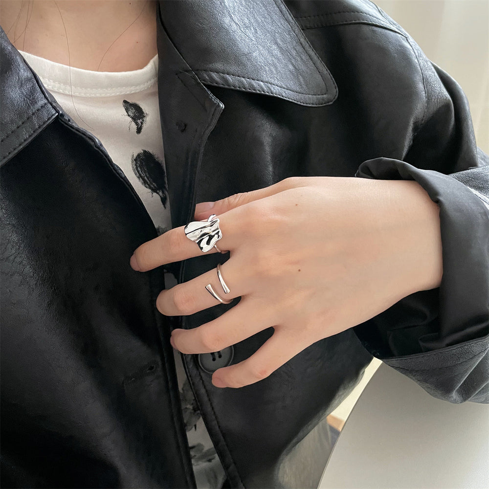 The second ring, showing an irregular curved design, is full of chic artistry. It breaks away from the traditional ring design and shows a different personality and fashionable attitude. This unique curved shape gives it a fascinating change of shade when refracted by light, adding color to your finger.