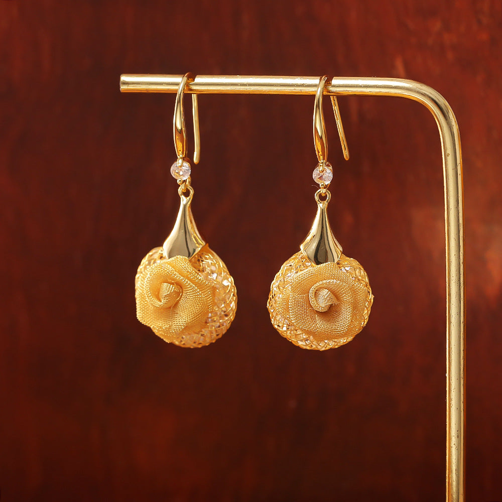 Mesh Rose Earrings|The Romantic Choice of Warm Retro