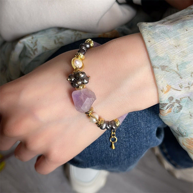 Simple Design: The bracelet typically features a simple design that emphasizes the natural beauty of the amethyst. Occasionally, it includes small metal accessories, such as silver or gold clasps, to increase durability and add decorative appeal.