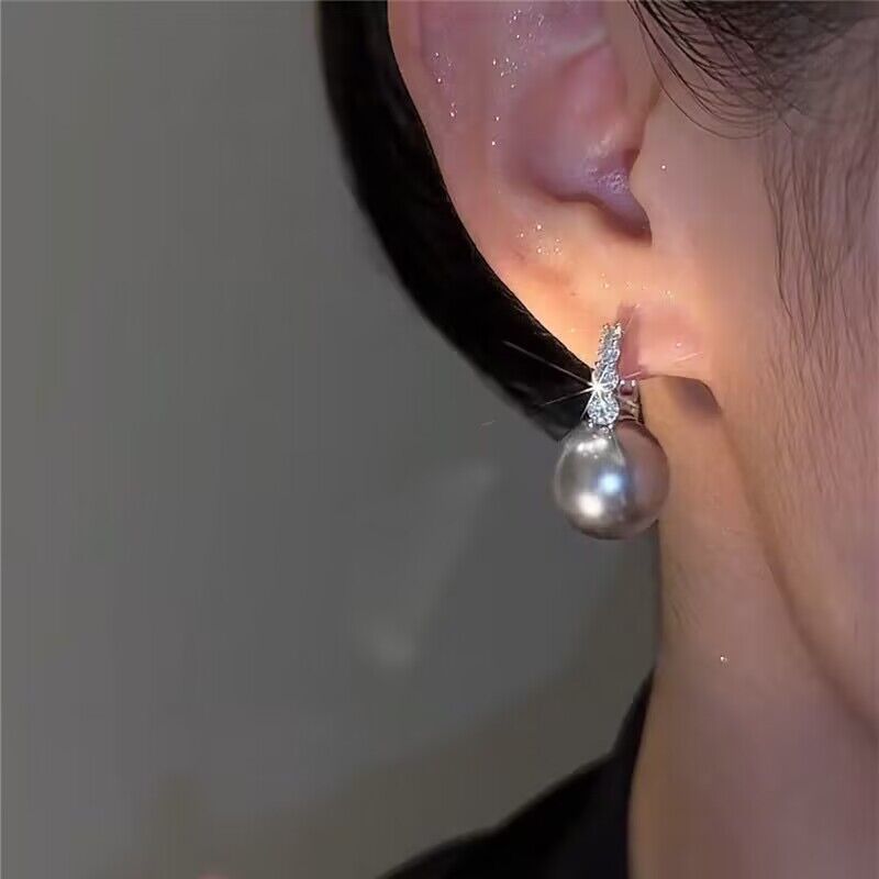Diamond and Light Gray Pearl Earrings are an elegant and exquisite jewelry accessory with a unique design and a splendid appearance.
