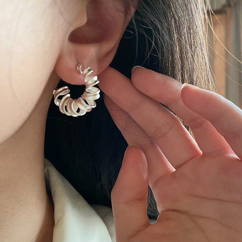 S925 Sterling Silver C-Shape Frosted Earrings