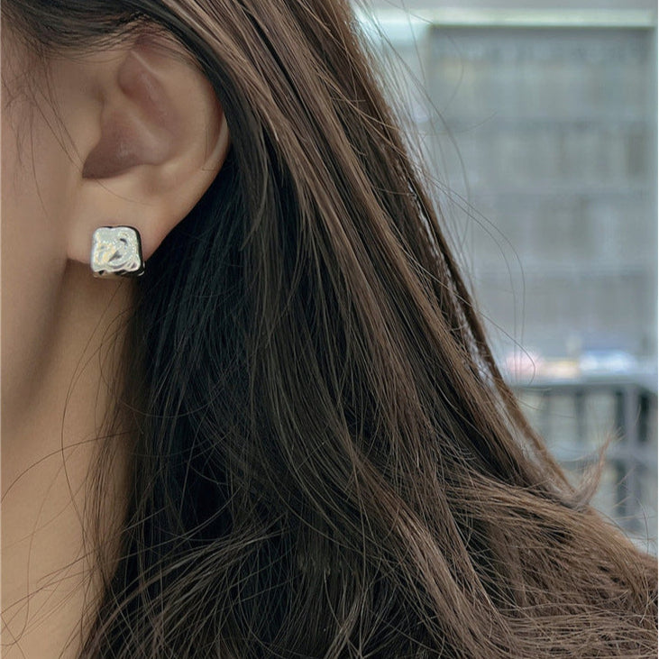 The Square Erosion Hoop Earrings are a unique and striking design that blends modern art with traditional style. The main feature of these earrings is their square silhouette, which presents a unique geometric aesthetic. The entire surface of the earrings has been finely finished to present an eroded or delicate texture, giving them a very unique and stylish look.