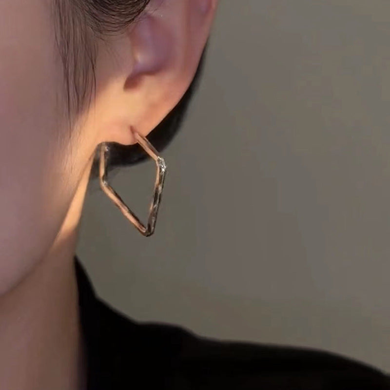 This square hoop earring is a simple and fashionable design made of copper, with a square ring shape that is suitable for various styles of clothing. This earring comes in two different color options: gold and silver. The gold version is made of copper material coated with a layer of gold color, giving it a golden shine, while the silver version is made of copper material coated with a layer of silver color, giving it a silver shine.