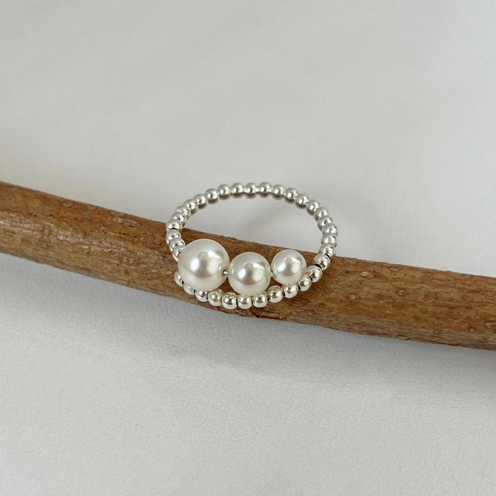 The pearls gradually decrease in size, creating a gradient effect that makes the overall design more unique and striking. Each pearl has been carefully selected to ensure its roundness and luster, which gives the overall ring a captivating natural glow.