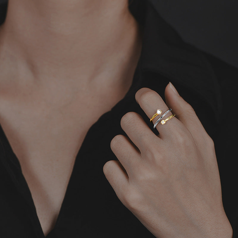 The Sterling Silver Multi-Layer Gold and Silver Adjustable Ring is suitable for daily wear as well as a standout accessory for special occasions. Its unique design makes it a fashionable piece that can be paired with various styles of clothing, showcasing individuality and taste. The open design of the ring makes it adjustable to different finger sizes while ensuring comfortable wear.