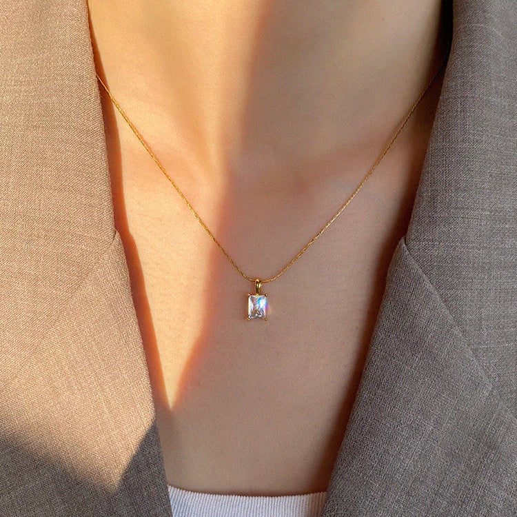 This super sparkly square zircon necklace is a beautiful piece of jewelry full of sparkle. It is made of high quality synthetic zirconia, each zirconia is cut into a square shape and finely polished to give each zirconia a dazzling glow.