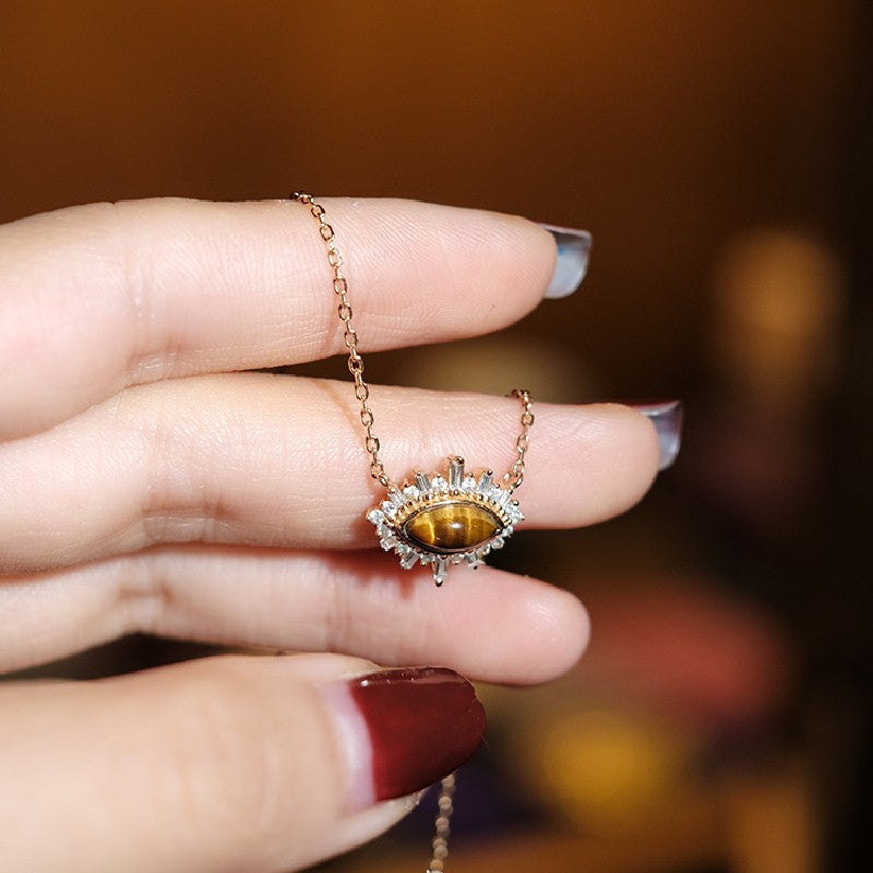 Suitable for any occasion, this tiger eye stone sterling silver plated 18k gold necklace will bring you sparkle and style, whether for everyday wear or formal occasions.