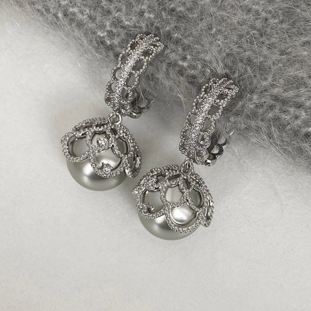 Gray Pearl Zircon Drop Earrings