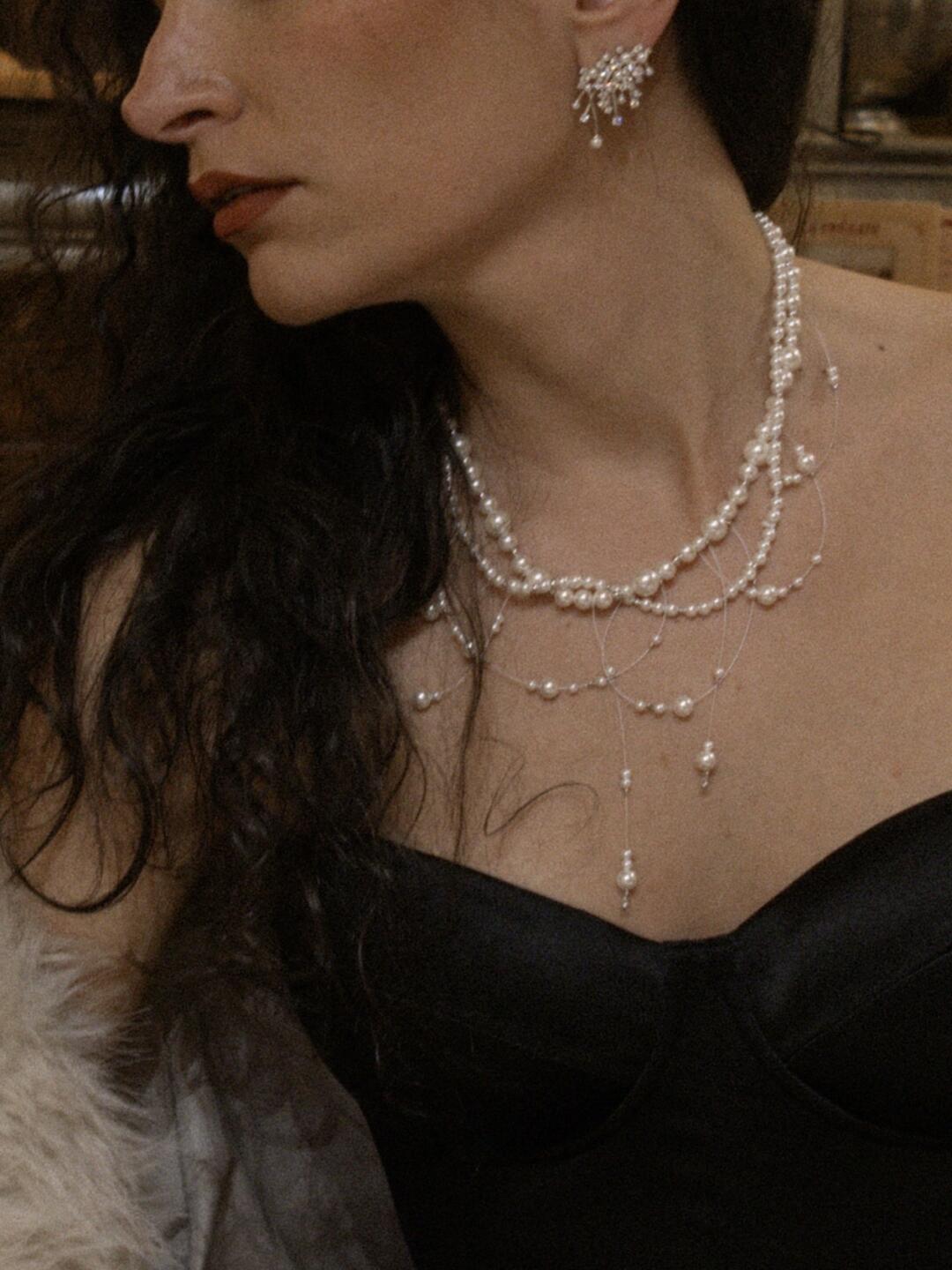 The intricate arrangement of pearls and stones resembles blooming branches or falling stardust, creating a graceful and feminine silhouette. Lightweight yet striking, these earrings make an ideal choice for weddings, evening events, or any moment when you want to shine effortlessly.