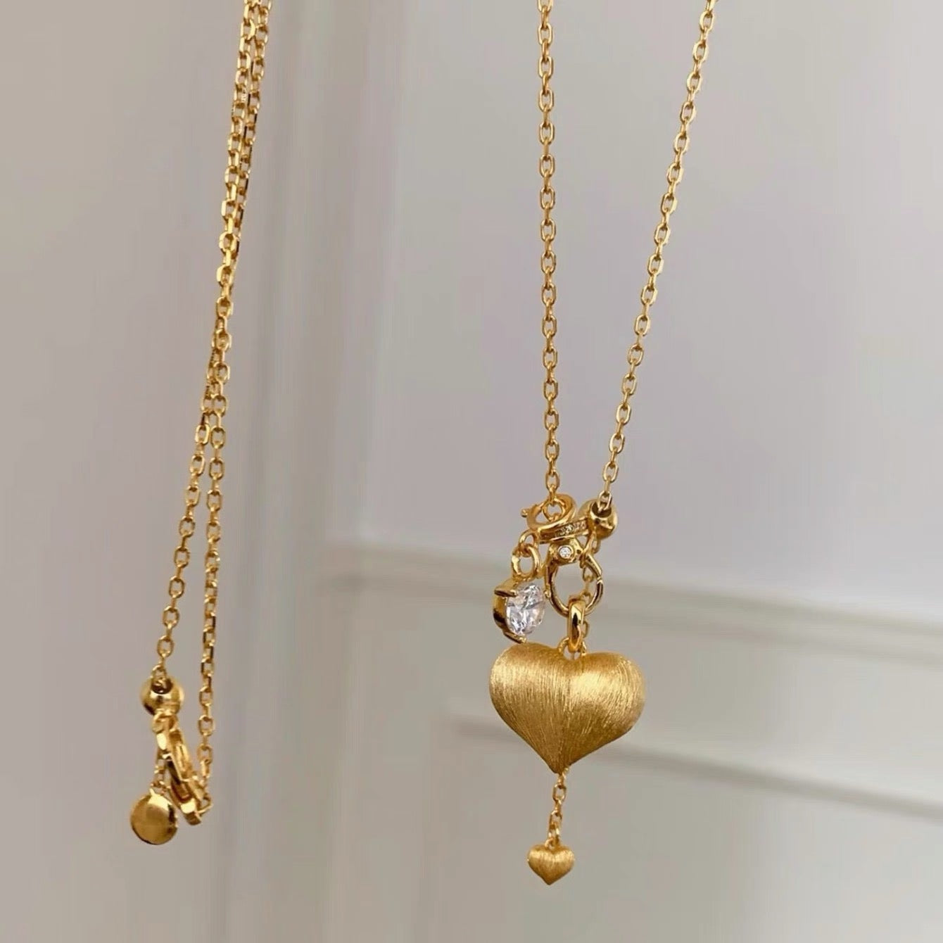 Delicate and timeless, this Heart Charm Pendant Necklace adds a soft romantic glow to your everyday look. Crafted in two materials — premium 925 sterling silver and gold-plated copper — it features a brushed heart pendant paired with a sparkling zircon accent, symbolizing love and light.